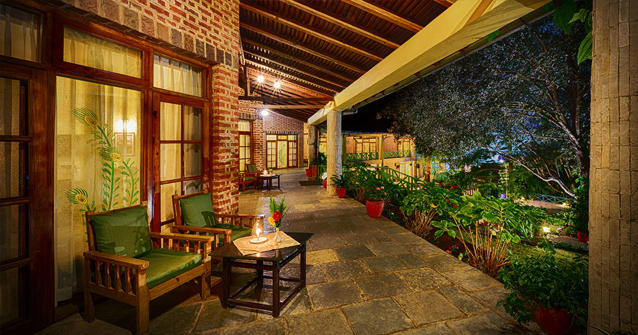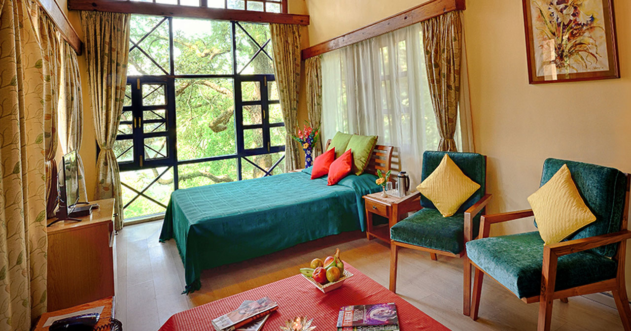 Spread over 70 acres of serene oak forest; this resort is situated at 4320 ft. above sea level. Home to more than 135 species of Birds, making it a bird watcher's paradise. This area falls in the buffer zone between the Palearctic and the Indo-Malayan climates. It has a Flora and fauna from both sides making it a picturesque setting with its large variety of multitude trees, flowers, shrubs and plants.